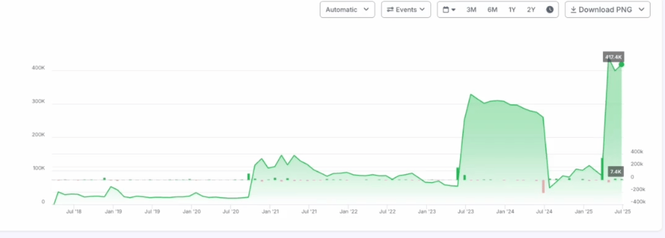 Her growth has been very wild, starting back in March of 2018 to now, where she was at zero. So we have seven years of going all over the place. Looking at how she's released music, we go back to 2015 with the first single that Chartmetric clocked her starting there.
