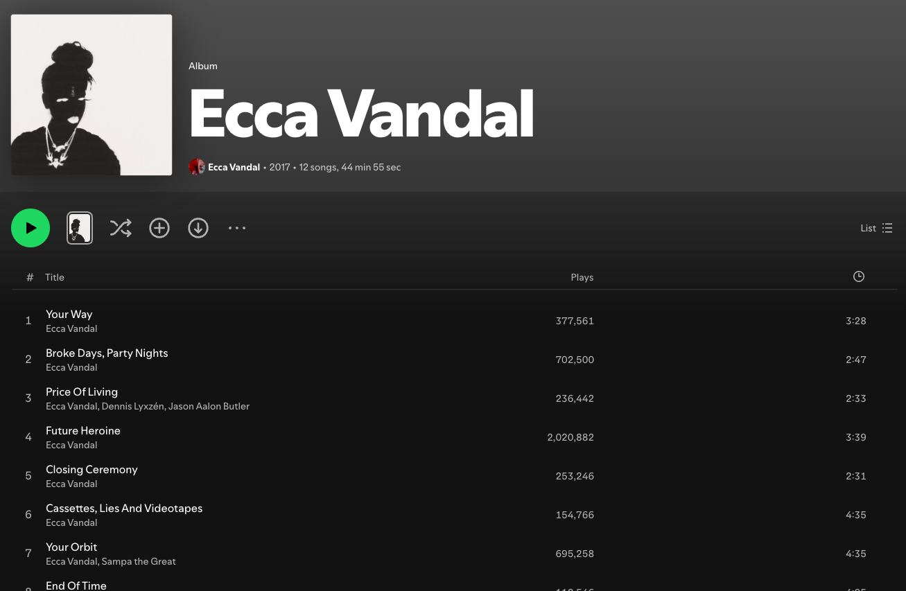 Ecca Vandal is Sri Lankan but from Melbourne. This is an interesting one in that one of the things we often talk about on here is diversity being punished, but she's really succeeding despite it.