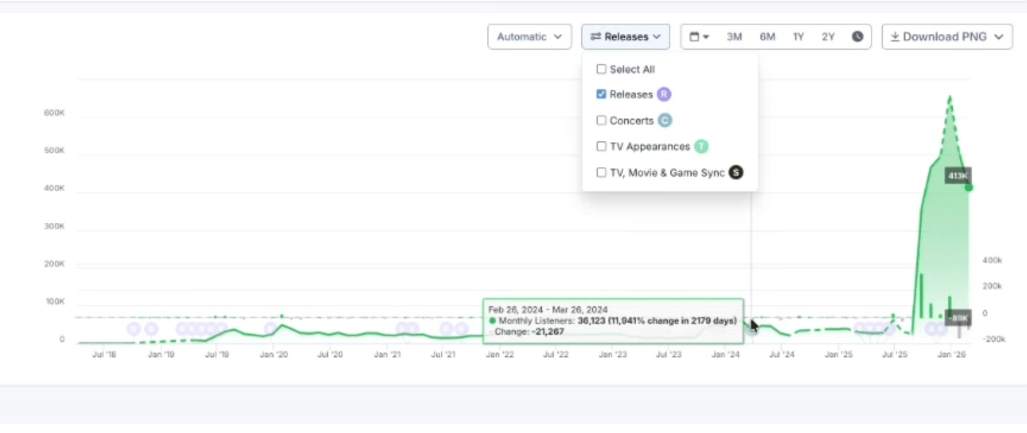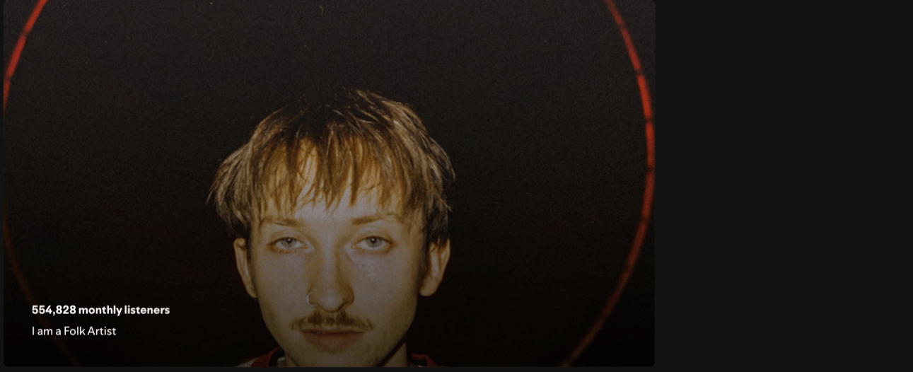 The Spotify numbers don't even begin to tell the full story. Hudson has been putting music up on Spotify for 10 years. For the first 3 of those years, absolutely nothing was happening. Through the years after that, he hovered in the 16k to 30k monthly listener range, depending on what had come out. Back in 2023, he got up to 66k. Then, with his big viral moment, he got all the way up to 660,000 monthly listeners.