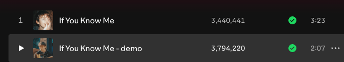 Hudson's most popular song has almost 3 million streams. One funny thing there: the main version actually has fewer streams than the demo, which I always find so interesting. The demo's been out a little longer, but not by much.