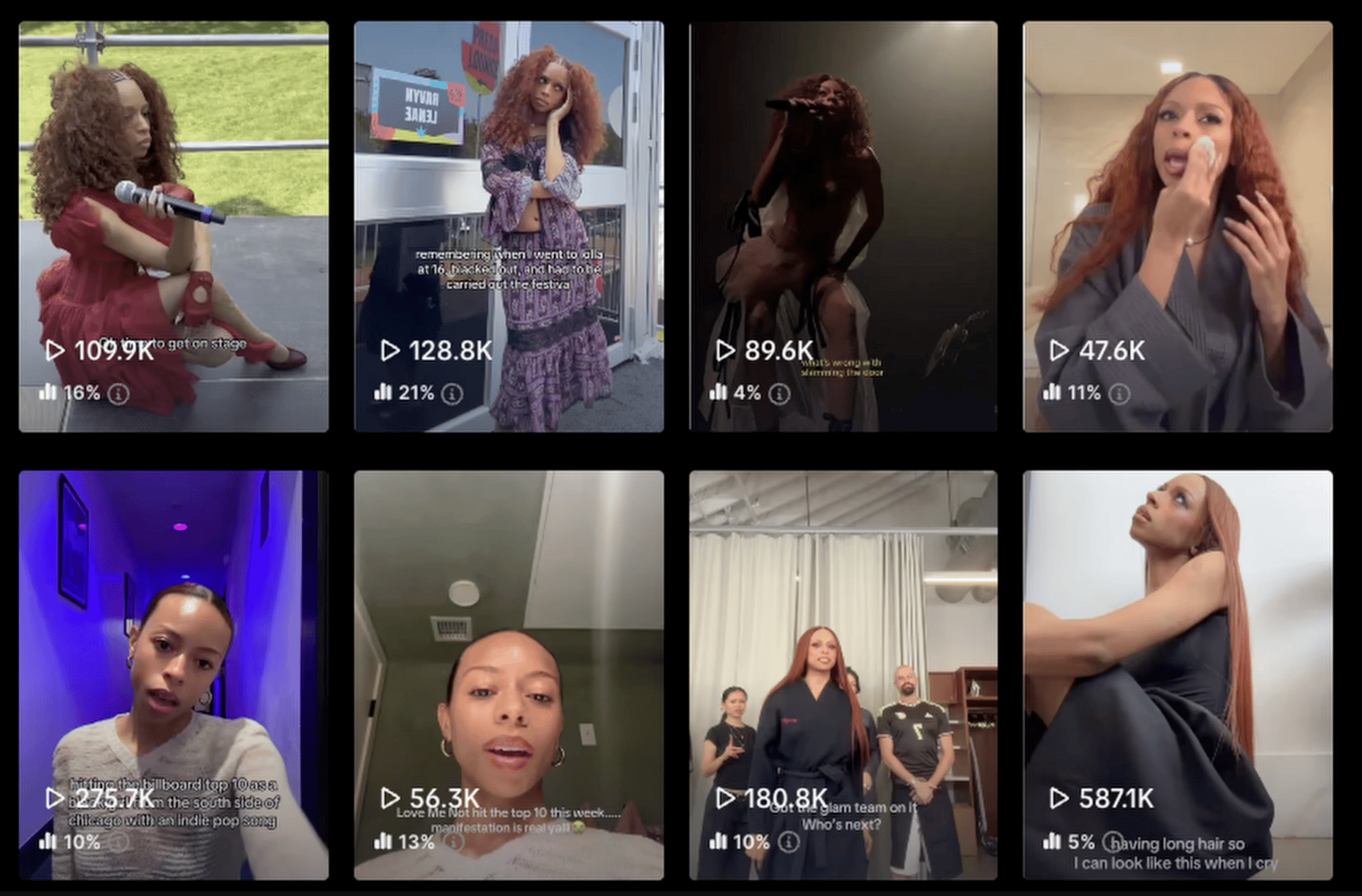 Let's go look at Ravyn Lenae’s TikTok page since I recently wrote a newsletter about her and Sombr and how they use recognizability as an advantage. We can see in about 6 videos that Ravyn Lenae can go from 1→12x her lowest performing video.