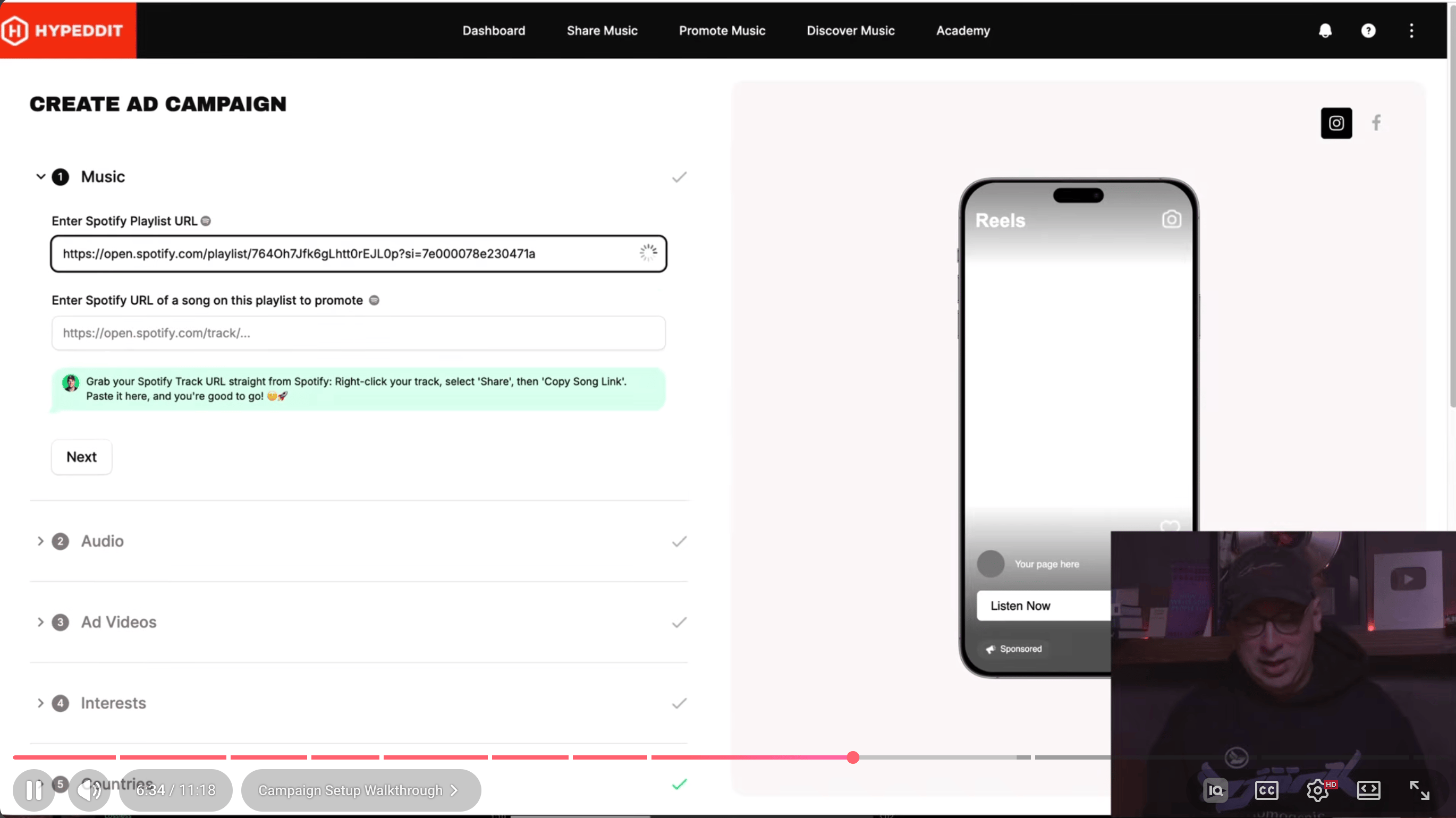 Once you confirm and publish, you connect your Facebook account. If setting up a Meta ad account is intimidating, Hypeddit offers a one-time $197 setup fee where they handle all of that for you. After launch, they monitor campaign performance and help identify which creatives are actually driving results — so you're not constantly babysitting the ad manager yourself.