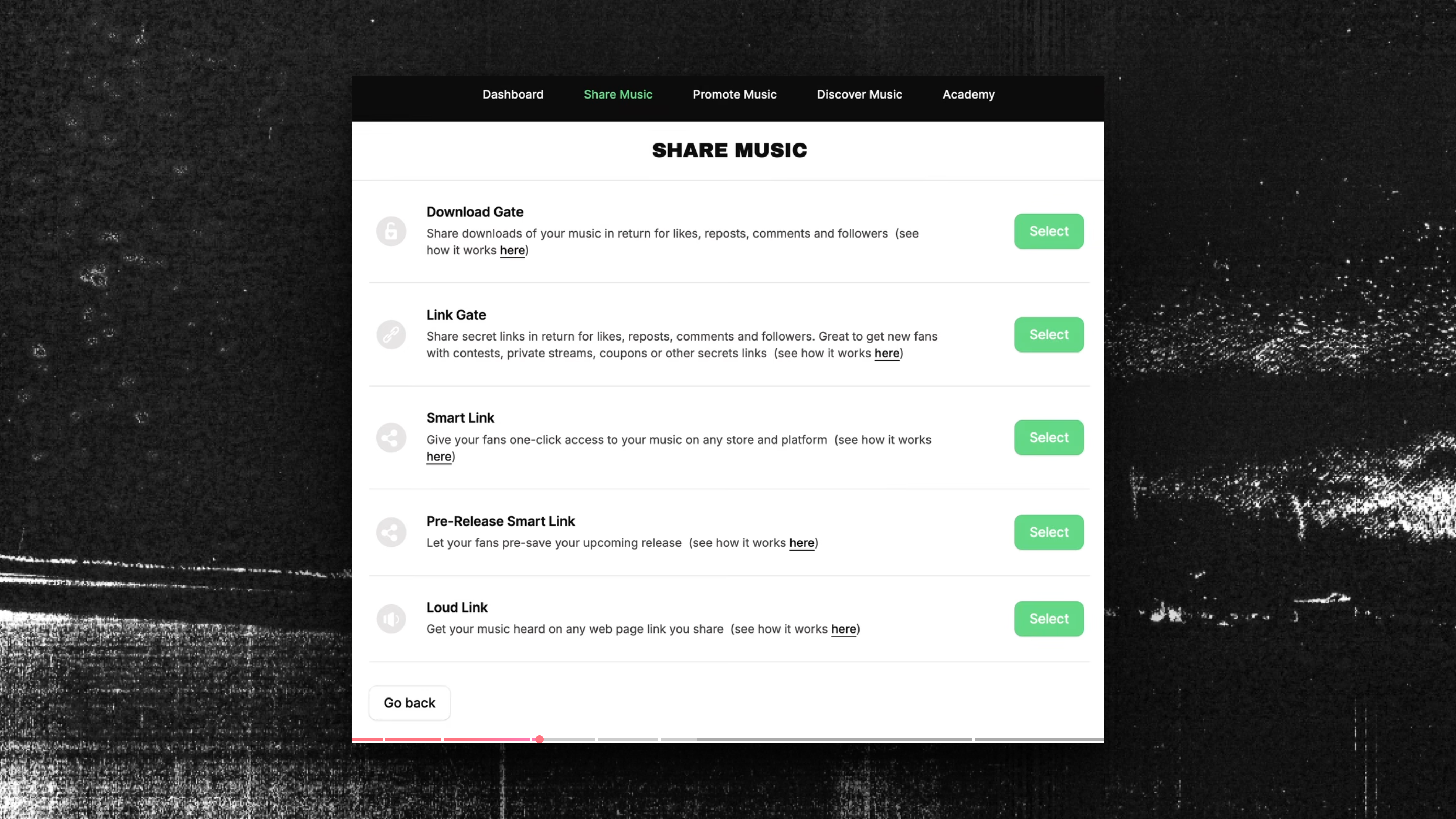 You paste your playlist link, then paste the URL of the specific song you want to play first — this is called deep linking, which means even if your song isn't the first track on the playlist, the link will start playback on your song. You upload the song's audio file, and Hypeddit detects the genre automatically (you can override it).