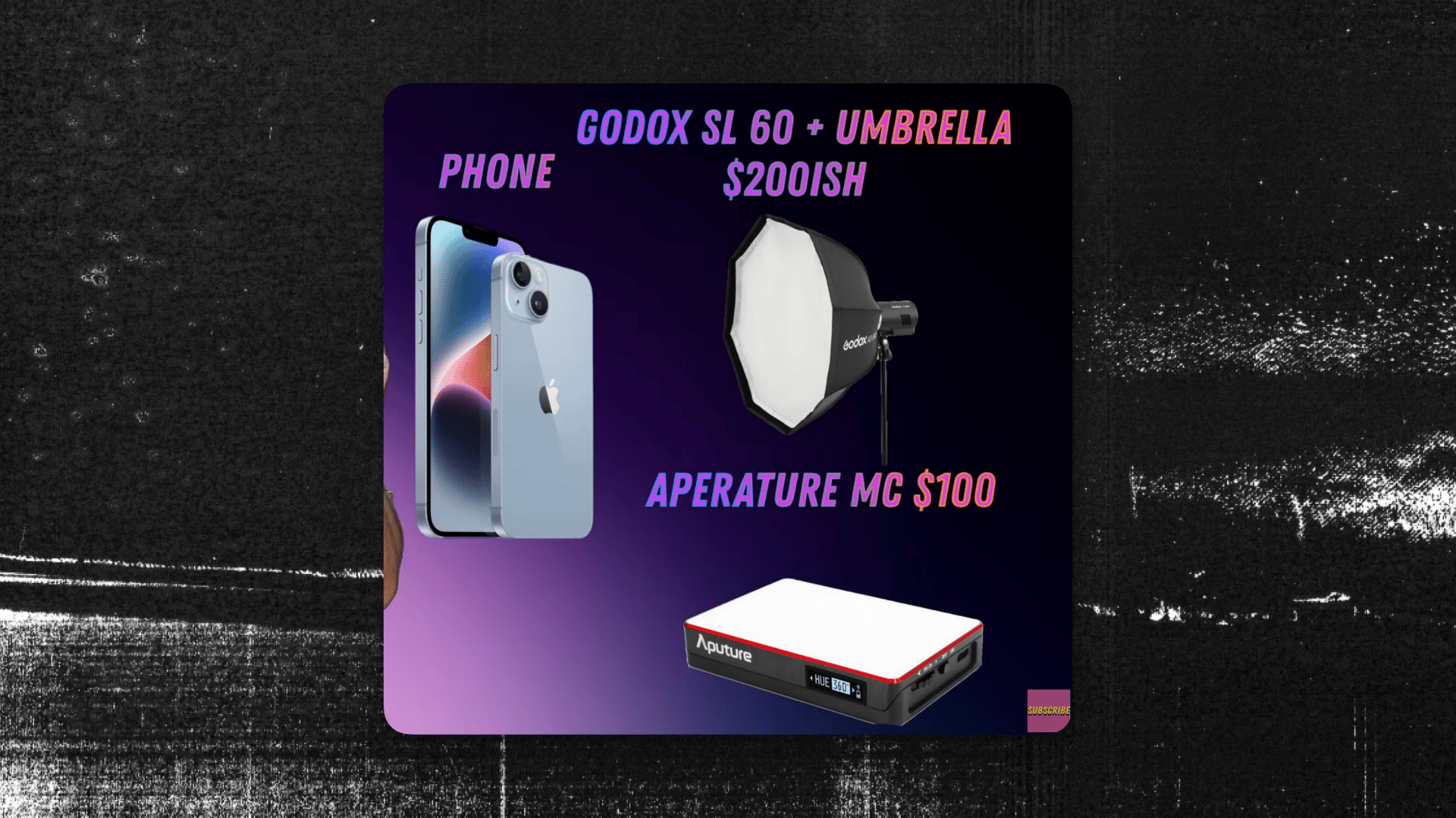 And a lot of you may still feel like you don't have the budget to do any of this, but honestly, I see artists every day making amazing videos where they have one of the recent generations of phones, one 200-ish dollar light with some diffusion that can create a lot of light in a room. And then this $100 gem from Aputure, which is called an MC, that can do light in any color.